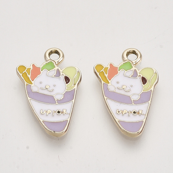 PandaHall Alloy Enamel Kitten Pendants, Light Gold, Cat with Ice Cream Shape, Lilac, 21.5x14x2mm, Hole: 1.8mm Alloy+Enamel Cat Shape Purple Price: $16.32 | PandaHall