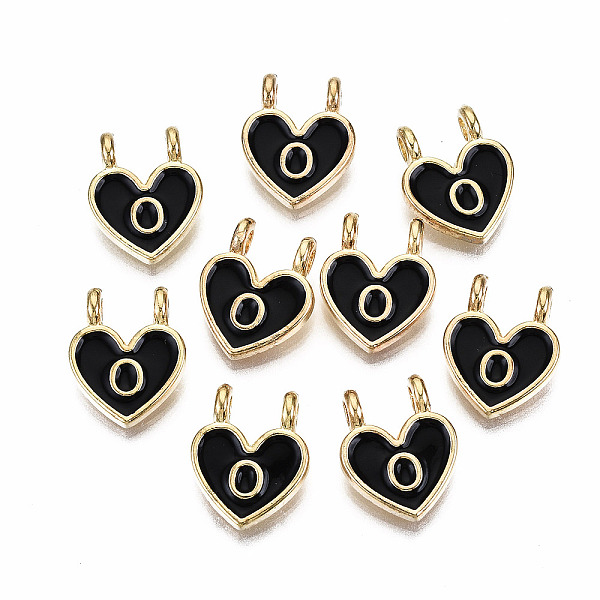 PandaHall Alloy Enamel Charms, Cadmium Free & Lead Free, Heart with Initial Letters, Light Gold, Black, Letter. O, 14.5x11.5x4.5mm, Hole: 2mm... Price: $1.35 | PandaHall