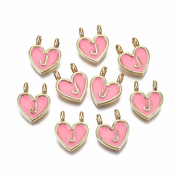 PandaHall Alloy Enamel Charms, Cadmium Free & Lead Free, Heart with Initial Letters, Light Gold, Hot Pink, Letter. J, 14.5x11.5x4.5mm, Hole... Price: $1.35 | PandaHall