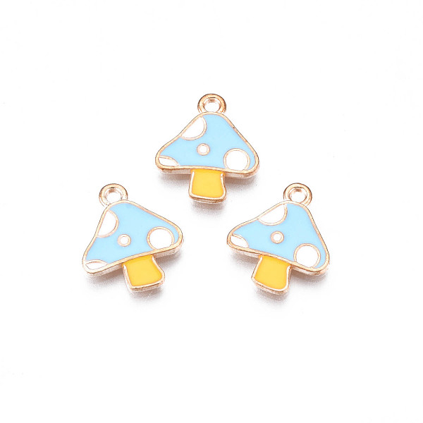 PandaHall Autumn Theme Alloy Enamel Charms, Cadmium Free & Lead Free, Mushroom, Light Sky Blue, 15x13x1.5mm, Hole: 1.5mm Alloy+Enamel... Price: $5.55 | PandaHall