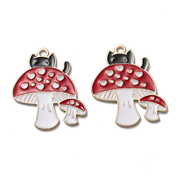 PandaHall Autumn Theme Alloy Enamel Pendants, Cadmium Free & Lead Free, Mushroom with Cat, Light Gold, Red, 29.5x26x1.5mm, Hole: 2mm... Price: $8.97 | PandaHall