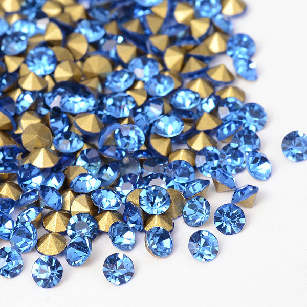 PandaHall Grade A Glass Pointed Back Chaton Rhinestones, Back Plated, Diamond, Montana, 4.0~4.2mm, about 144pcs/gross Glass Rhinestone... Price: $15.68 | PandaHall