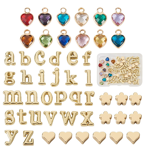 PandaHall DIY Birthstone Jewelry Making Finding Kit, Including Flower & Heart Brass Beads, Letter A~Z Alloy & Glass Pendant, Mixed Color... Price: $13.83 | PandaHall