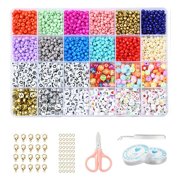 PandaHall Beads Set for DIY Jewelry Making Findings Kits, Including 12/0 Opaque & Paint & Transparent Glass Seed Beads, Letter Acrylic Beads... Price: $2.17 | PandaHall