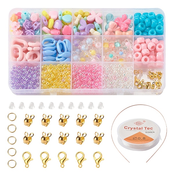 PandaHall DIY Jewelry Making Finding Kit, Including Flower & Round & Flat Round & Candy Glass & Acrylic & Plastic Beads, Butterfly Glass... Price: $1.28 | PandaHall