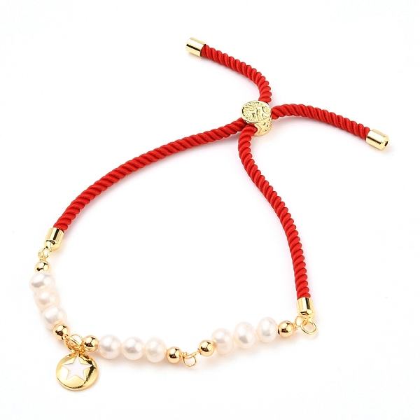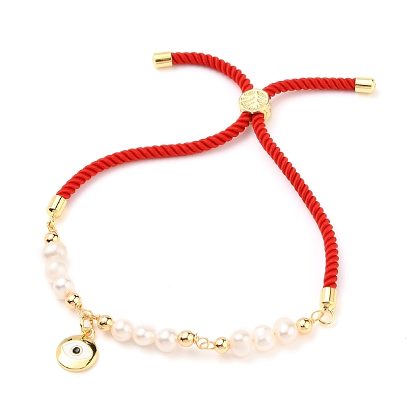 PandaHall Adjustable Nylon Cord Slider Bracelets, Bolo Bracelets, with Natural Pearl Beads, Brass Beads and Brass Enamel Charms, Flat Round... Price: $17.43 | PandaHall