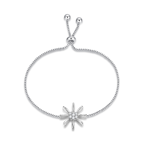 PandaHall Eco-Friendly Electroplate Brass Slider Bracelets, Bolo Bracelets, with Cubic Zirconia, Flower, Platinum, 10-1/4 inch(26cm) Cubic... Price: $2.74 | PandaHall