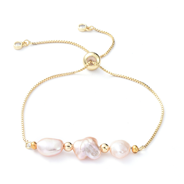 PandaHall Brass Slider Bracelets, Bolo Bracelets, with Natural Baroque Pearl Keshi Pearl Beads and Box Chains, Golden, Single Chain Length... Price: $25.79 | PandaHall