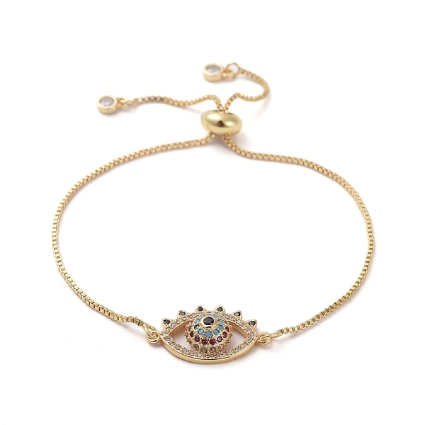 PandaHall Adjustable Brass Micro Pave Cubic Zirconia Bolo Bracelets, Slider Bracelets, Evil Eye, Mixed Color, 10-1/4 inch(26cm), 1.2mm Cubic... Price: $10.61 | PandaHall