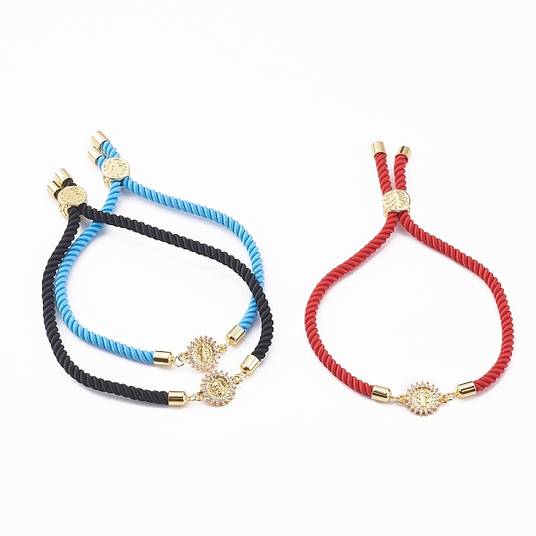 PandaHall Nylon Cord Slider Bracelets, Bolo Bracelets, with Brass Micro Pave Clear Cubic Zirconia Links, Flat Round with Virgin Mary, Golden... Price: $18.79 | PandaHall