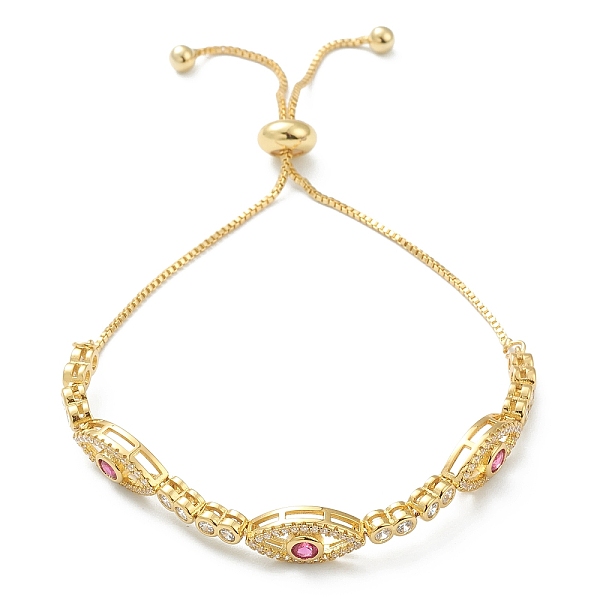 PandaHall Brass Micro Pave Cubic Zirconia Slider Bracelets, Bolo Bracelets, Real 18K Golden Plated, Eye, Pink, Inner Diameter: 1-1/8~2-7/8... Price: $13.71 | PandaHall