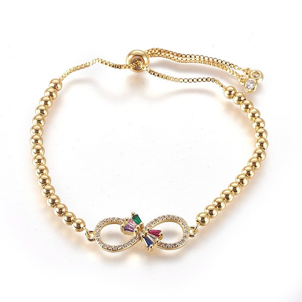 PandaHall Adjustable Brass Cubic Zirconia Slider Bracelets, Bolo Bracelets, with Box Chains and Round Beads, Bowknot, Golden, Colorful... Price: $9.79 | PandaHall