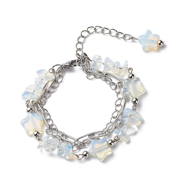 PandaHall Star Opalite Beads Multi-strand Bracelets, 304 Stainless Steel Paperclip Chains & Brass Curb Chains Bracelets for Women, Stainless... Price: $0 | PandaHall