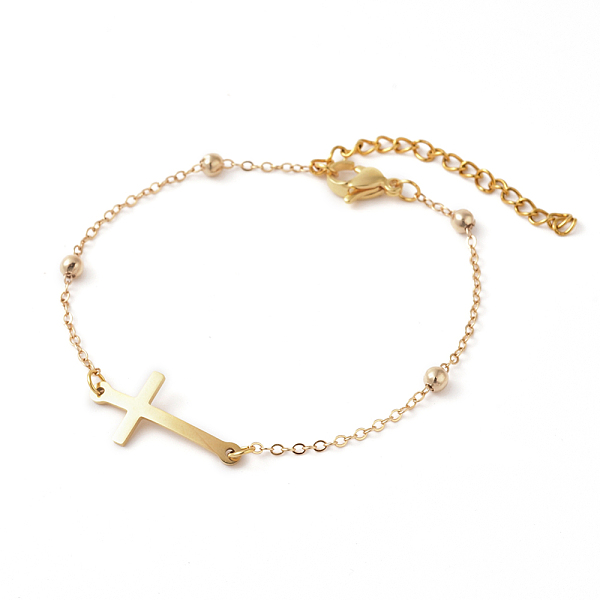 PandaHall Link Bracelets, with Brass Cable Chains, 201 Stainless Steel Latin Cross Links and 304 Stainless Steel Curb Chains & Lobster Claw... Price: $0 | PandaHall