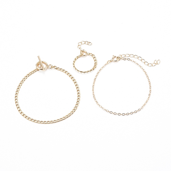 PandaHall Brass Curb Chain Bracelets & Necklaces Jewelry Sets, with 304 Stainless Steel Toggle Clasps, Golden, 18.11 inch(46cm), 7-7/8 inch... Price: $0 | PandaHall