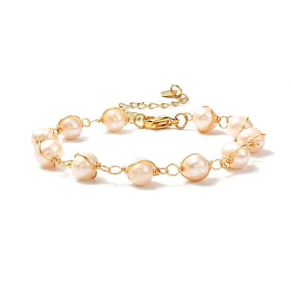 PandaHall Natural Baroque Pearl Keshi Pearl Link Bracelets, with Brass Curb Chains, 304 Stainless Steel Lobster Claw Clasps and Flat Round... Price: $0 | PandaHall