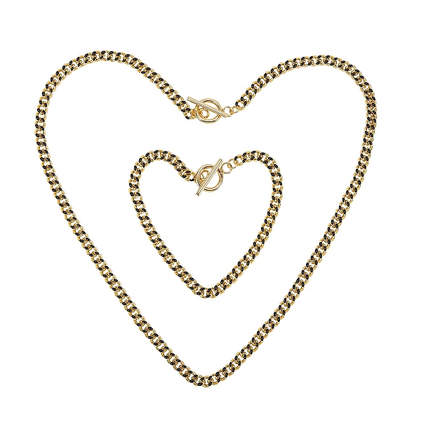 PandaHall Brass Curb Chain Bracelets & Necklaces Sets, with Enamel and 304 Stainless Steel Toggle Clasps, Real 18K Gold Plated, Black... Price: $0 | PandaHall