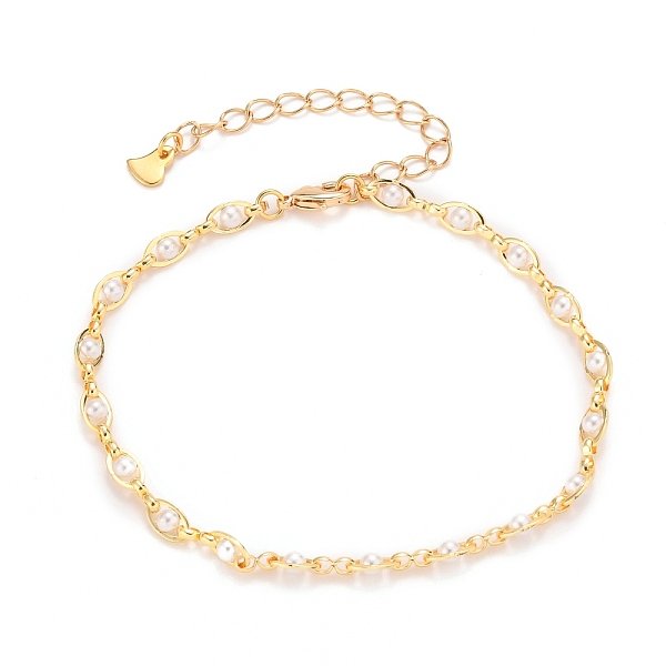 PandaHall Glass Pearl Link Chain Bracelets, with Brass Curb Chains and Lobster Claw Clasps, Golden, 8-1/8 inch(20.5cm) Glass Price: $0 | PandaHall