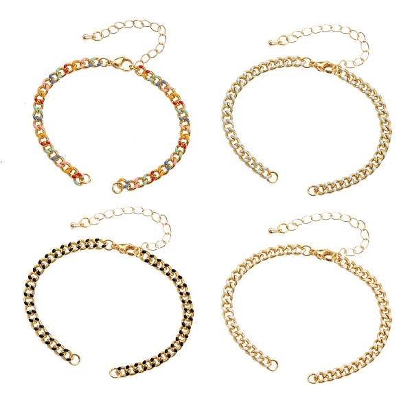 PandaHall 4Pcs 4 Colors Two Tone Handmade Brass Curb Chain Bracelet Makings, with Enamel and 304 Stainless Steel Lobster Claw Clasps, Mixed... Price: $0 | PandaHall