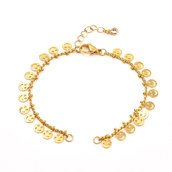 PandaHall Flat Round with Smiling Face Brass Charm Bracelets, with Curb Chains and Cubic Zirconia, Golden, 7-1/2 inch(19cm) Cubic Zirconia Price: $0 | PandaHall