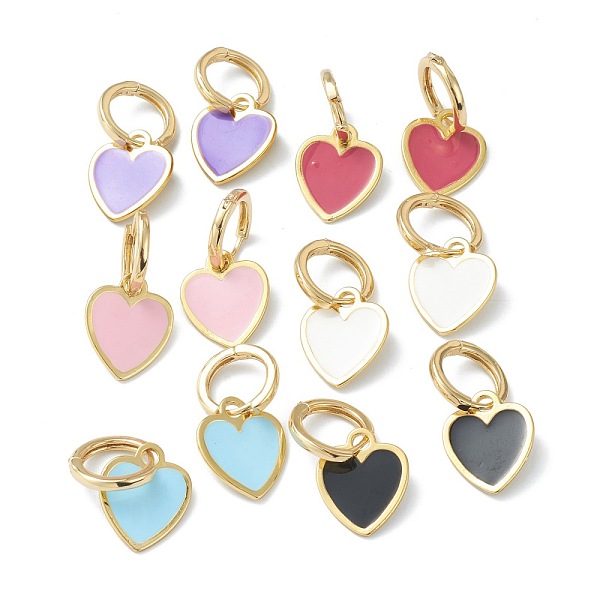 PandaHall Brass Enamel Huggie Hoop Earrings, Heart, Golden, Mixed Color, 15x2mm, Pin: 1mm Brass Heart Multicolor Price: $8.97 | PandaHall