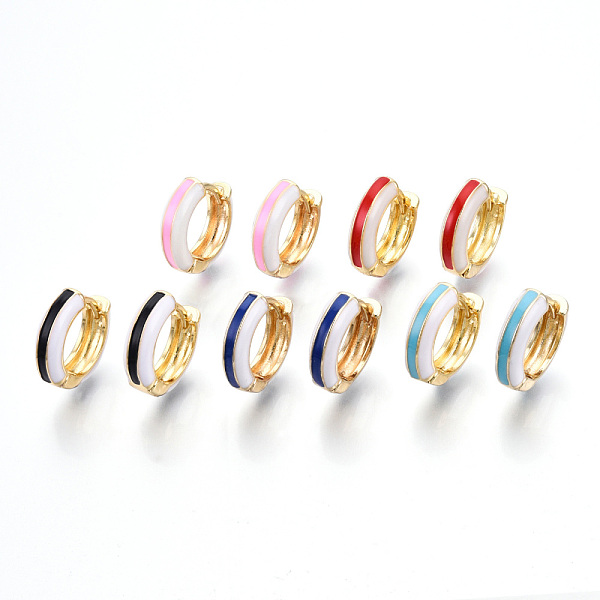 PandaHall Brass Enamel Huggie Hoop Earrings, Ring, Golden, Mixed Color, 14x3.5mm, Pin: 1mm Brass Ring Multicolor Price: $5.71 | PandaHall