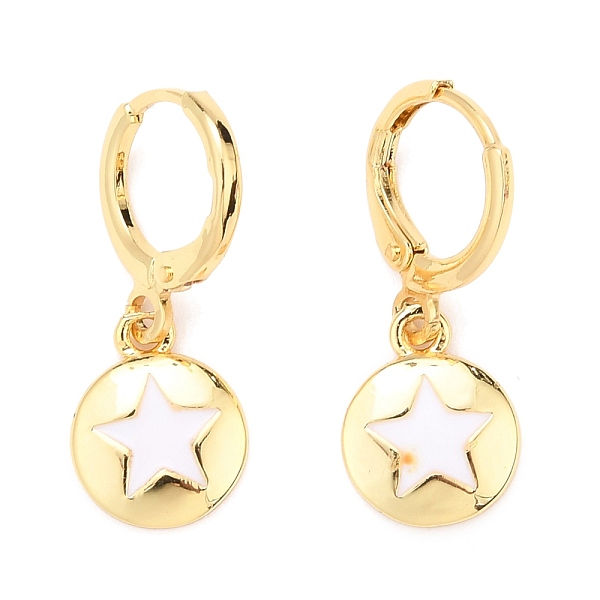 PandaHall Brass Huggie Hoop Earrings, with Enamel, Flat Round with Star, White, Real 18K Gold Plated, 25~26mm, Pin: 0.9mm Brass Star White Price: $5.57 | PandaHall