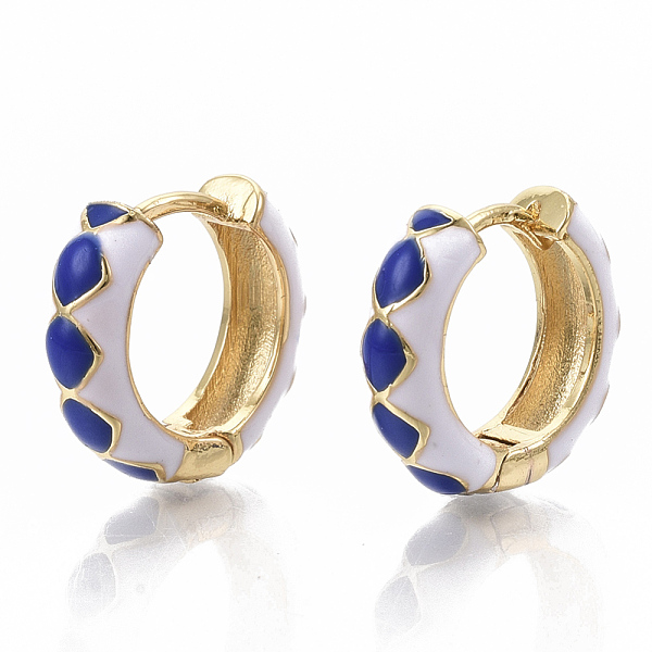 PandaHall Brass Huggie Hoop Earrings, with Two Tone Enamel, Real 18K Gold Plated, Blue, 16x16.5x5mm, Pin: 1x1mm Brass Blue Price: $10.61 | PandaHall