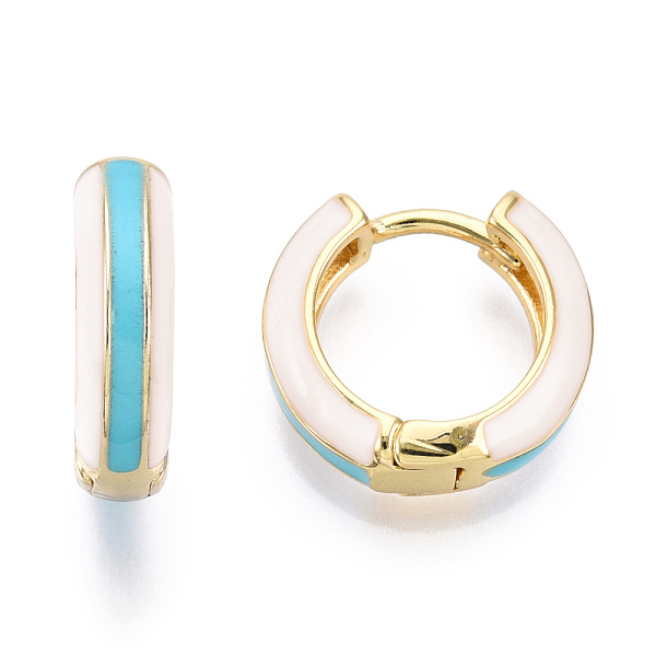 PandaHall Brass Enamel Huggie Hoop Earrings, Nickel Free, Ring, Real 16K Gold Plated, Cyan, 15.5x3.5mm, Pin: 1mm Brass Ring Cyan Price: $16.12 | PandaHall