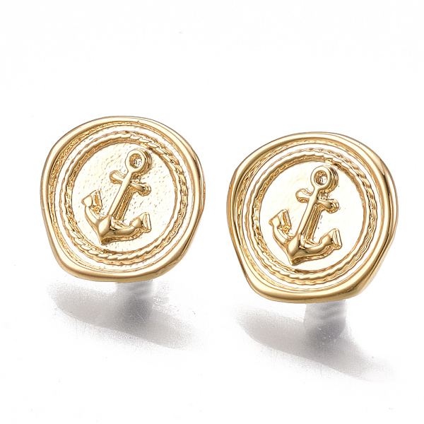 PandaHall Brass Stud Earring Findings, with Loop, Real 18K Gold Plated, Flat Round with Anchor, 13x13.5mm, Hole: 2mm, Pin: 0.8mm Brass Flat... Price: $1.86 | PandaHall