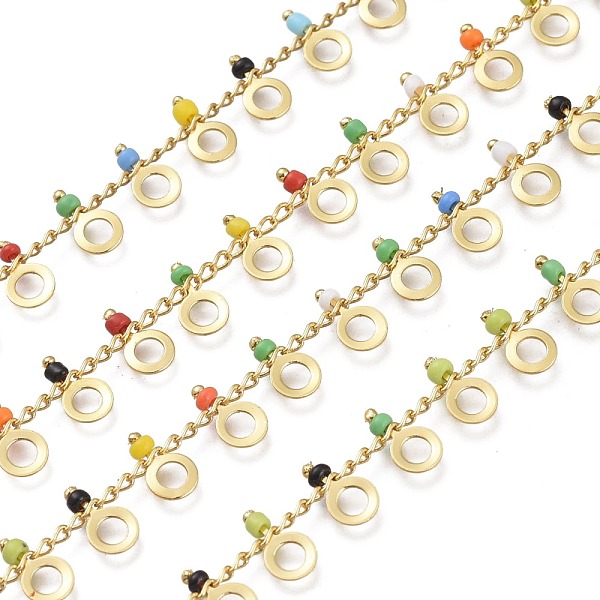 PandaHall Handmade Glass Beaded Chains, with Real 18K Gold Plated Brass Side Twisted Chains Curb Chains, with Spool, Long-Lasting Plated... Price: $50.91 | PandaHall