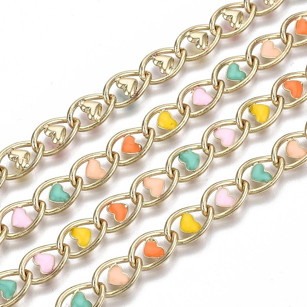 PandaHall Brass Twisted Chains Curb Chains, with Enamel, Long-Lasting Plated, Soldered, Heart, Colorful, Light Gold, Link: 11x7x2mm... Price: $11.72 | PandaHall
