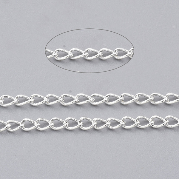 PandaHall Brass Twisted Chains, Curb Chains, Soldered, with Spool, Lead Free & Nickel Free & Cadmium Free, Silver, 3x2x0.45mm Brass Price: $4.47 | PandaHall