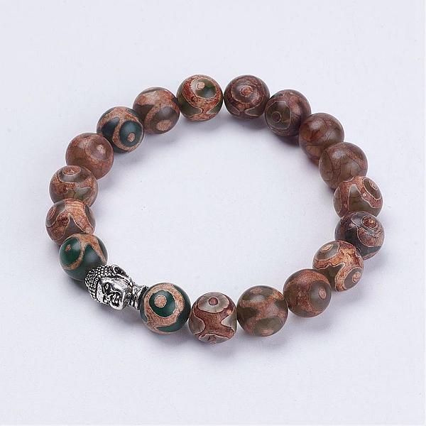 PandaHall Tibetan Style Dzi Bead Stretch Bracelets, with Tibetan Style Buddha Head Beads, Burlap Packing Pouches Drawstring Bags, 2 inch... Price: $8.05 | PandaHall