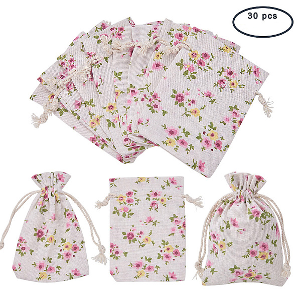 PandaHall Cotton Packing Pouches Drawstring Bags, with Printed Flower, Colorful, 18x13cm Burlap Price: $7.57 | PandaHall