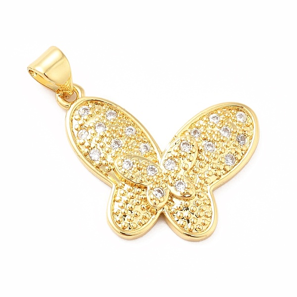 PandaHall Rack Plating Brass Micro Pave Clear Cubic Zirconia Pendants, Cadmium Free & Nickel Free & Lead Free, Butterfly, Real 18K Gold... Price: $19.58 | PandaHall