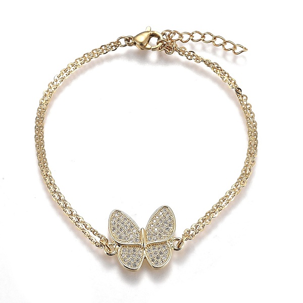 PandaHall Brass Micro Pave Clear Cubic Zirconia Link Bracelets, with 304 Stainless Steel Cable Chains, Butterfly, Golden, 7 inch(17.8cm) 304... Price: $26.11 | PandaHall