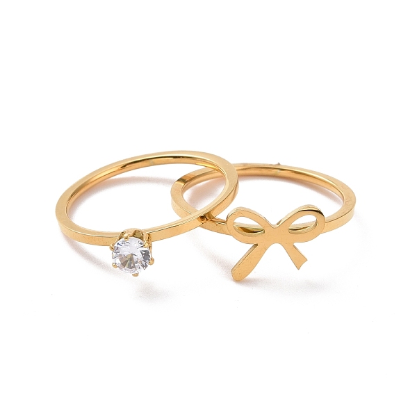 PandaHall 2Pcs 2 Style Clear Cubic Zirconia Couple Rings Set, Ion Plating(IP) 304 Stainless Steel Butterfly Rings for Bestfriends Lovers... Price: $13.05 | PandaHall