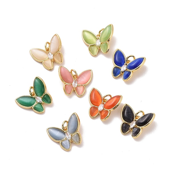 PandaHall Butterfly Brass Micro Pave Clear Cubic Zirconia Pendants, with Cat Eye, with Jump Rings, Cadmium Free & Lead Free, Real 18K Gold... Price: $13.05 | PandaHall