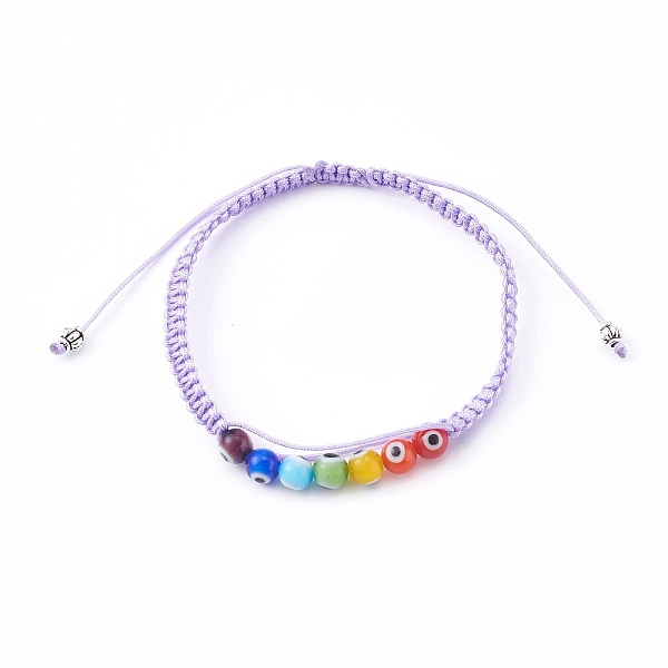 PandaHall Chakra Jewelry, Adjustable Nylon Cord Braided Bead Bracelet, with Evil Eye Lampwork Round Beads and Alloy Spacer Beads, Lilac... Price: $19.58 | PandaHall