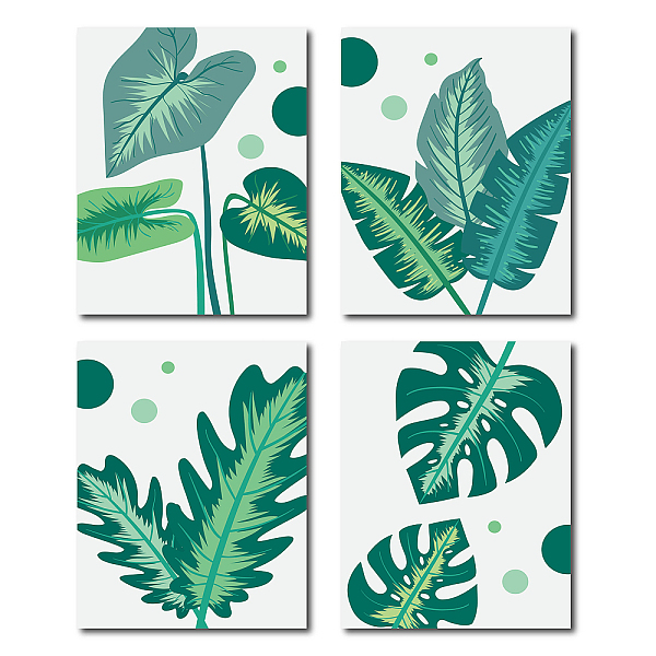 PandaHall Chemical Fiber Oil Canvas Wall Art, Canvas Print Wall Painting Home Decorations, Rectangle, Green, Leaf Pattern, 25x20cm, 4pcs/set... Price: $2.07 | PandaHall