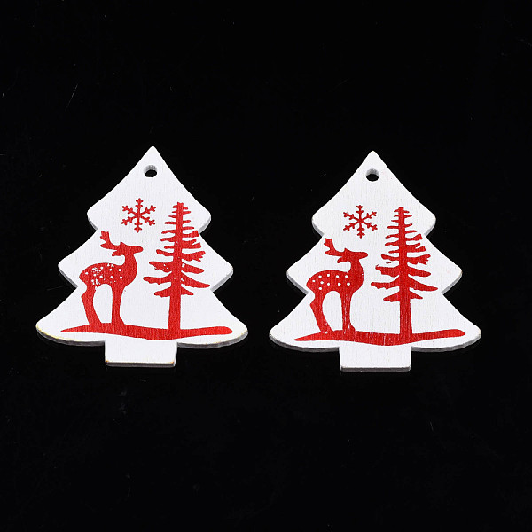 PandaHall Christmas Theme Spray Painted Wood Pendants, Single-Sided Printed, Christmas Tree with Reindeer/Stag, White, 49x43x2.5mm, Hole... Price: $63.97 | PandaHall