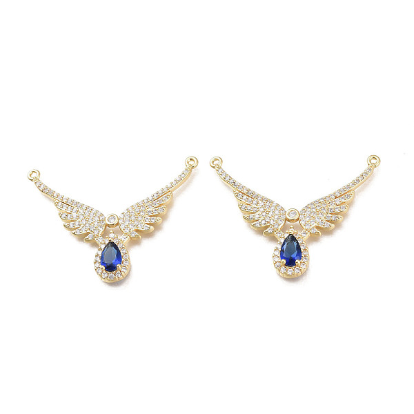 PandaHall Brass Micro Pave Clear Cubic Zirconia Links, Wing, Real 18K Gold Plated, Blue, 37~42x32~37x5mm, Hole: 1mm Brass+Cubic Zirconia... Price: $0 | PandaHall