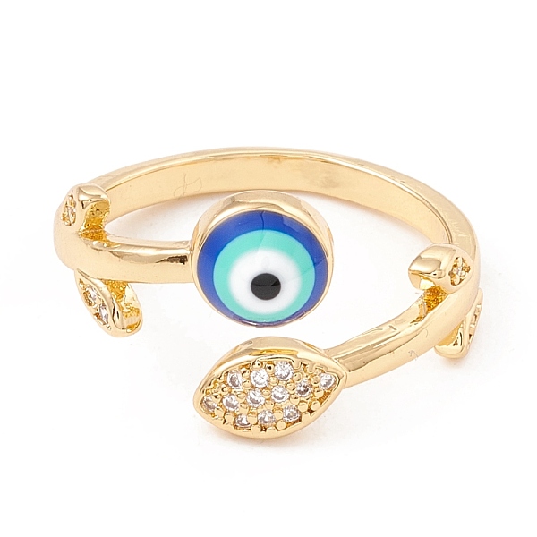 PandaHall Lampwork Evil Eye Open Cuff Ring with Clear Cubic Zirconia, Real 18K Gold Plated Brass Jewelry for Women, Blue, Inner Diameter... Price: $0 | PandaHall