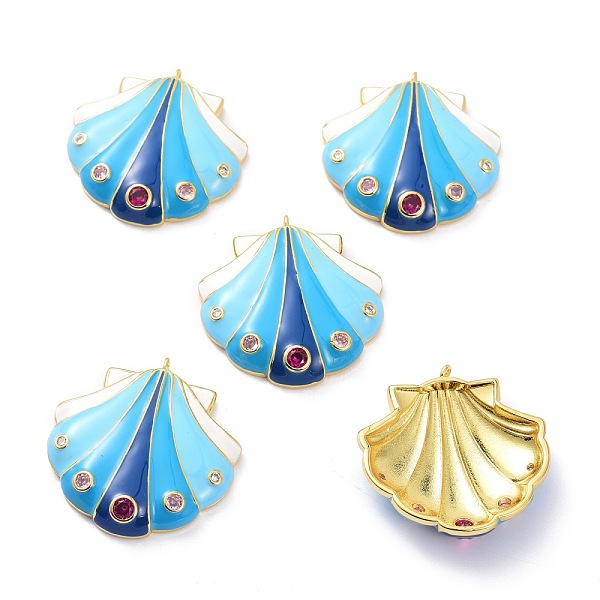 PandaHall Real 18K Gold Plated Brass Micro Pave Clear Cubic Zirconia Pendants, with Enamel, Long-Lasting Plated, Scallop, Deep Sky Blue... Price: $0 | PandaHall