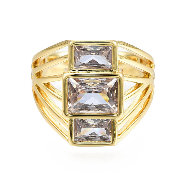 PandaHall Clear Cubic Zirconia Triple Rectangle Open Cuff Ring, Brass Chunky Wide Ring for Women, Nickel Free, Real 18K Gold Plated, US Size... Price: $10.93 | PandaHall