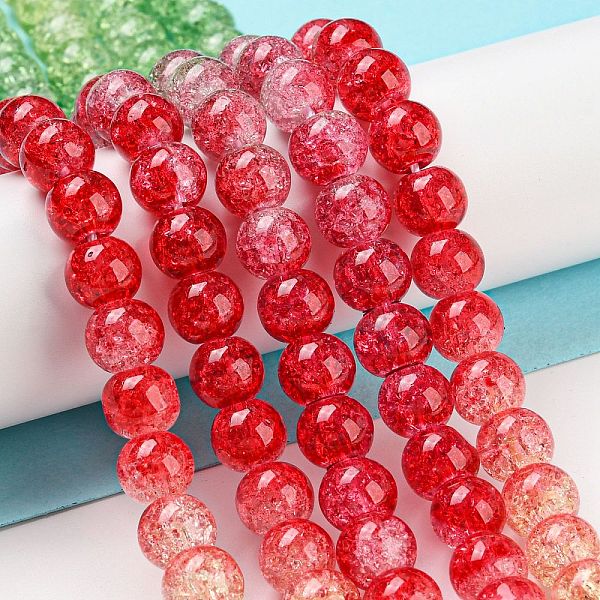 PandaHall Spray Painted Crackle Glass Beads Strands, Gradient Color, Segmented Multi-color Beads, Round, Red, 8mm, Hole: 1mm, about... Price: $9.91 | PandaHall