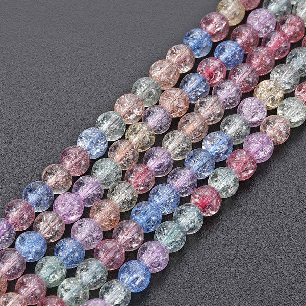 PandaHall Crackle Glass Beads Strands, Dyed & Heated, Round, Mixed Color, 8x7mm, Hole: 1.8mm, about 104~107pcs/strand, 30.12 inch~30.91 inch... Price: $24.5 | PandaHall