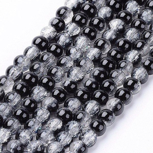PandaHall Crackle Glass Beads Strands, Dyed & Heated, Round, Black, 8x7mm, Hole: 1.8mm, about 104~107pcs/strand, 30.12 inch~30.91 inch... Price: $24.5 | PandaHall