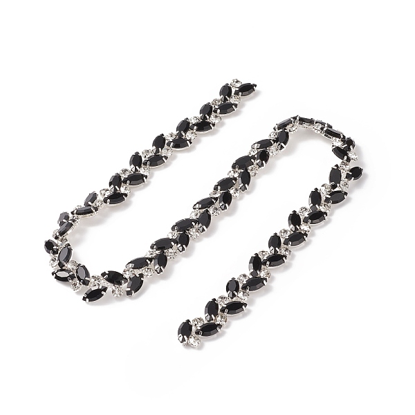 PandaHall (Defective Closeout Sale: Bottom Yellowing), Iron Jet Rhinestone Cup Chains, Leaf, with Card Paper, Silver, 16x6.5mm... Price: $4.18 | PandaHall